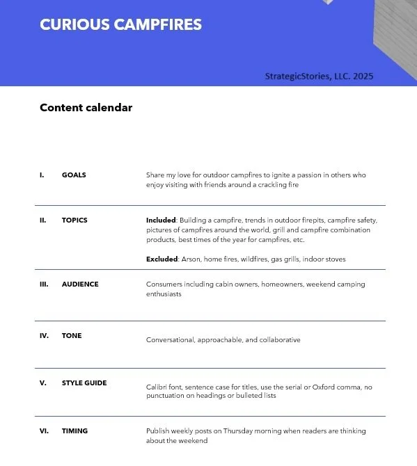 Need help building your own blog content calendar? Contact me. StrategicStories is here to help you set your blog up for success.